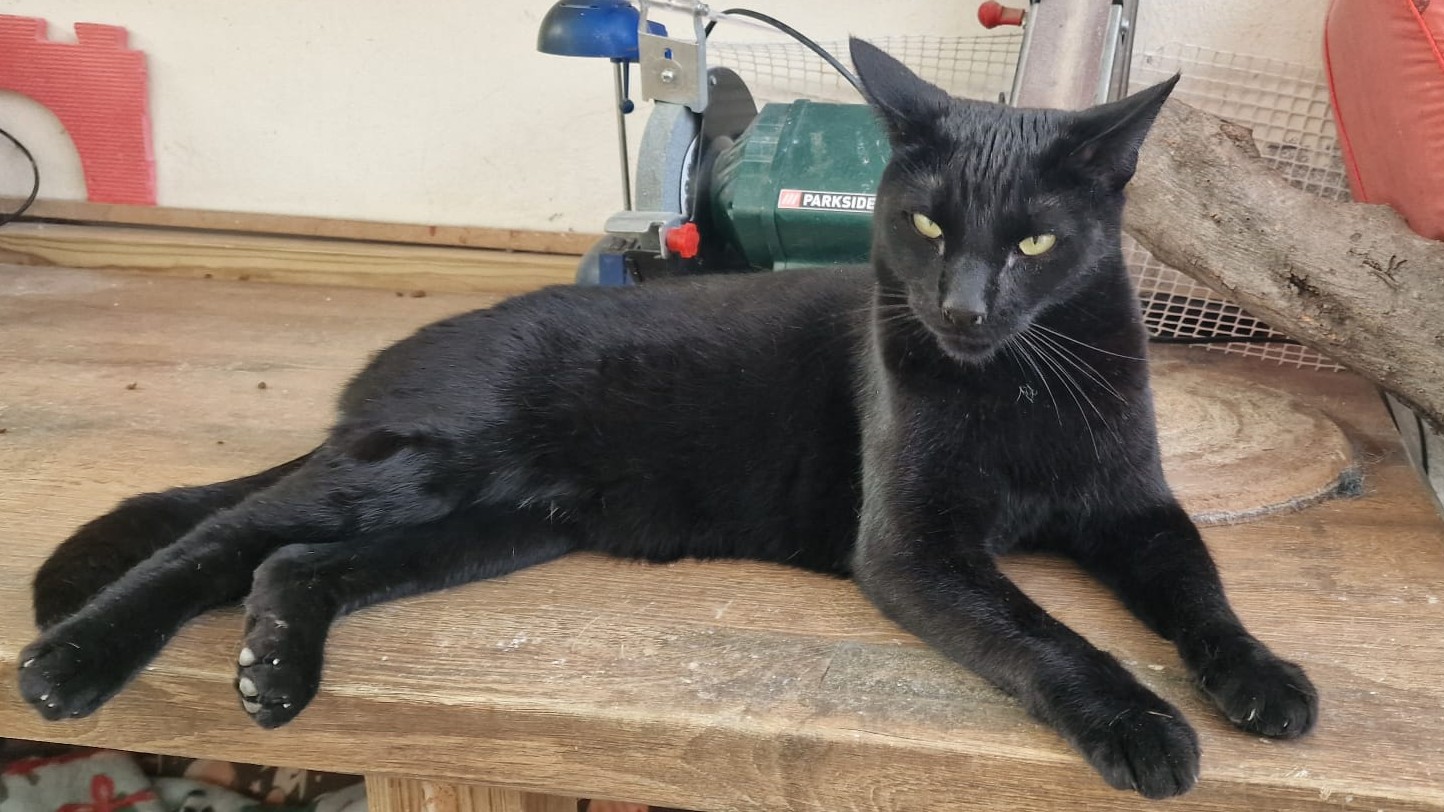 Unser schwarzes Lackfellchen Lili ist ein liebe und relativ grosse Katze - als Katze und auch für spanische Verhältnisse (ca. 5kg).